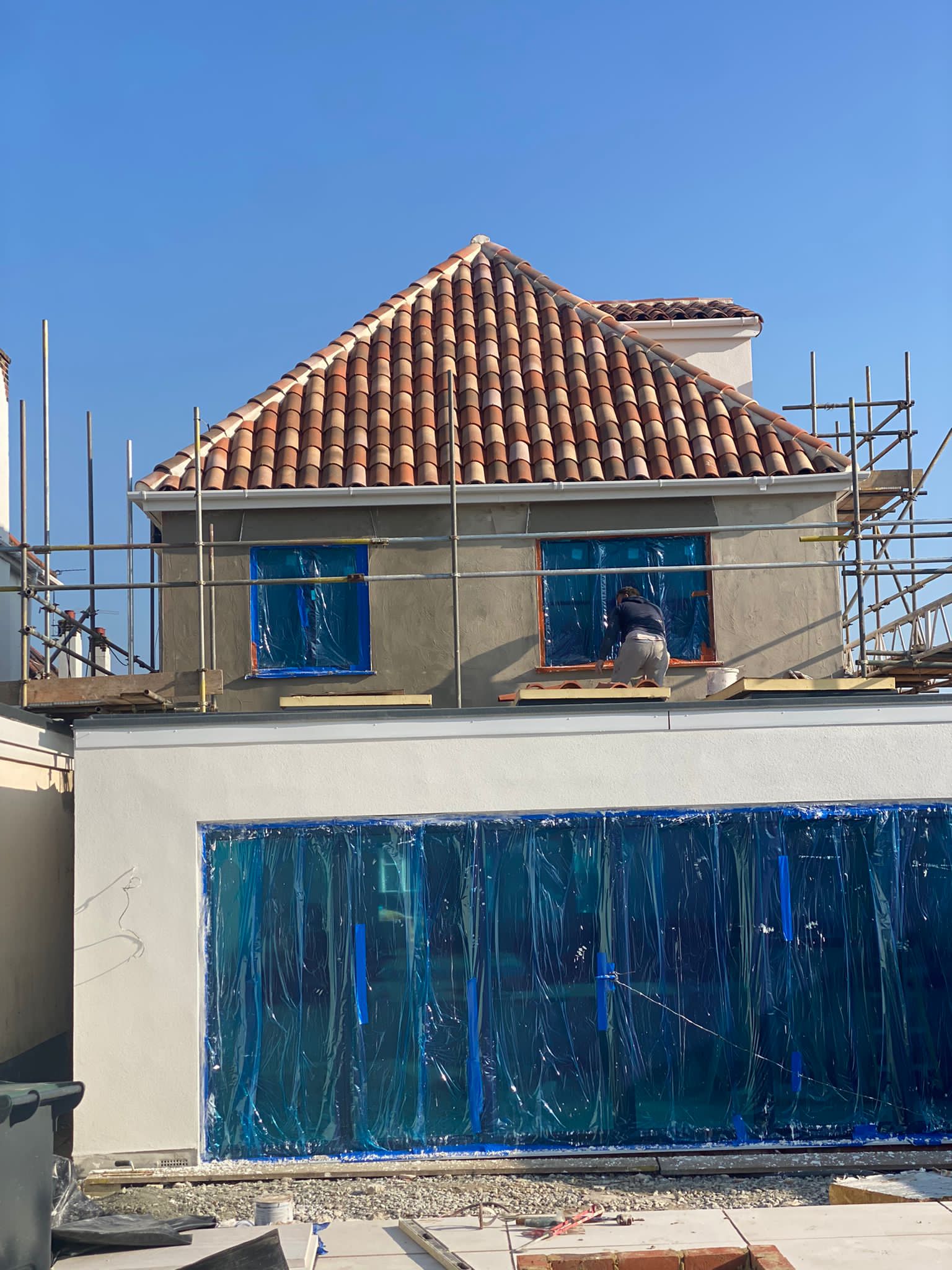 This roofing tile is slightly larger than the French version and so less are needed to cover a square metre. The ‘bases’ (or the bottom concave tiles) are batten fixable, and the ‘tops’ (the top or covering convex tiles) are laid on top and are best fixed in place by either a small spot of glue or expanding foam or mortared to the base tile.