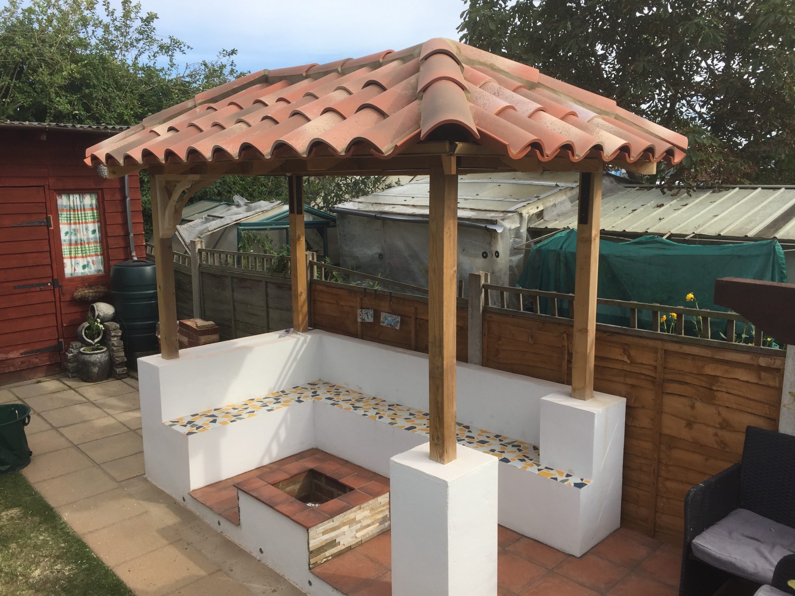 The cost of this roof is £41 per sq.m. The base tiles are £2 each and the covering tiles £2.10 each. The top tiles can be used on top of corrugated cement board roofing sheets or other substrates.